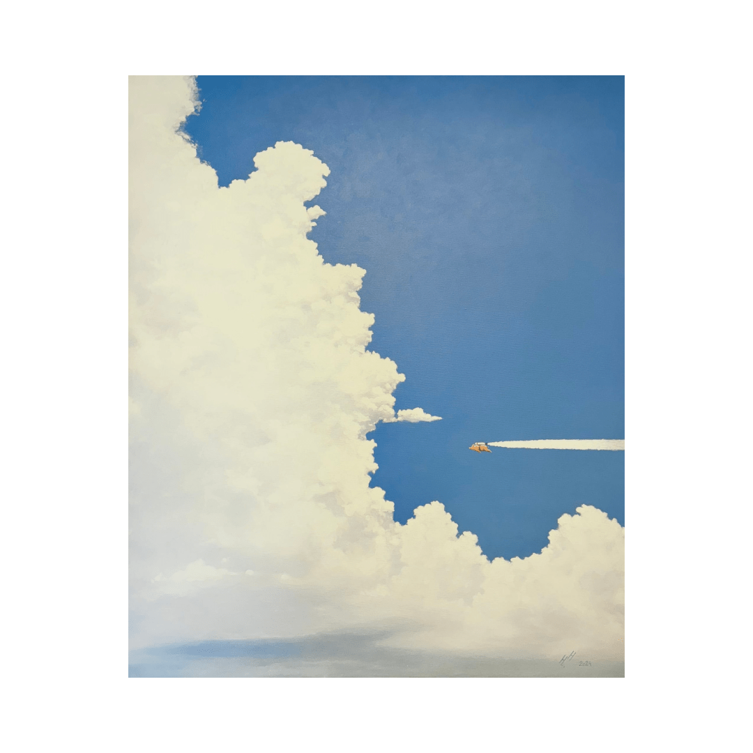 Henrik Hürden “The Art of Flying” (2024), acrylic on canvas, 120×100 cm
