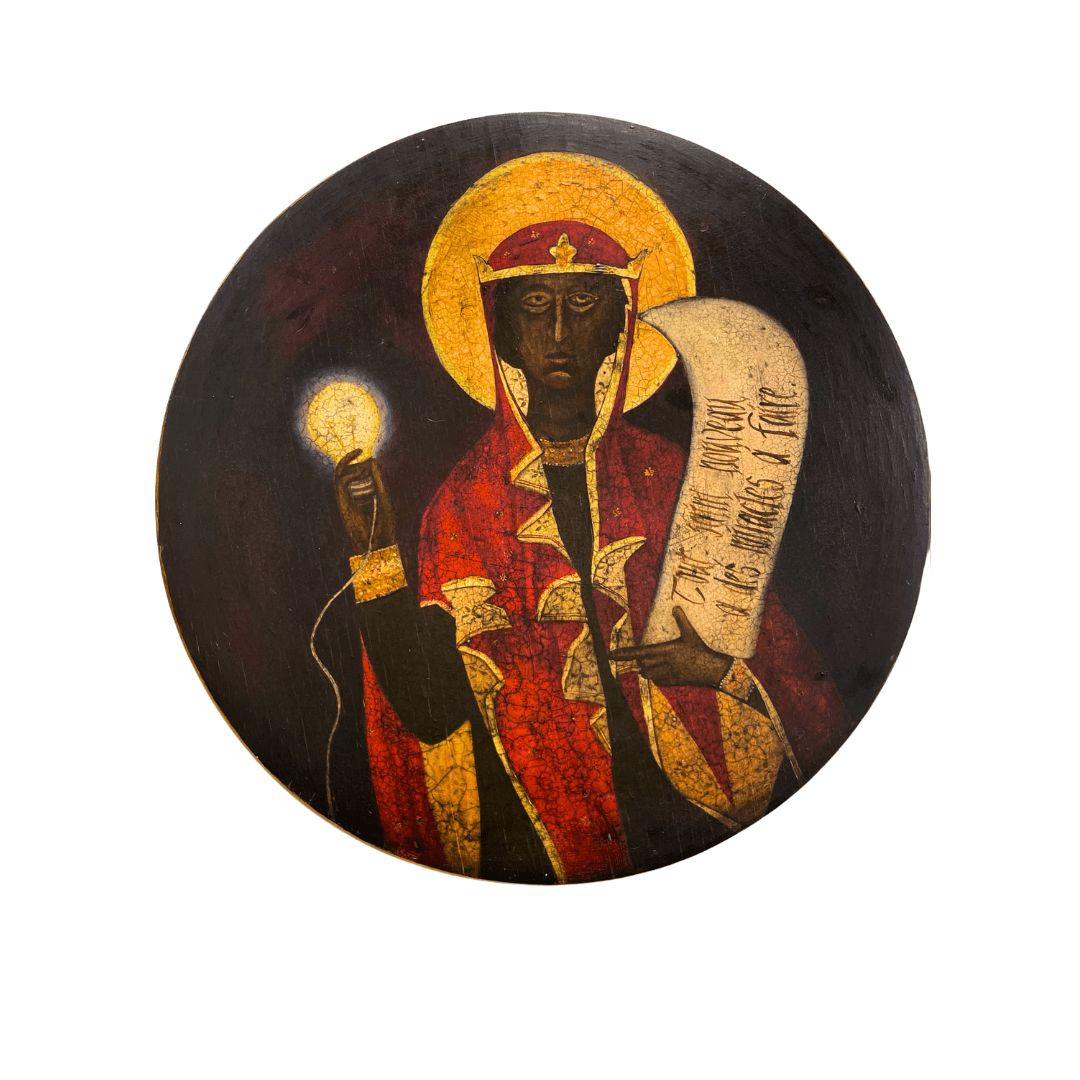 Mall Nukke “Saint with object no 4” (2001) d 60, oil painting on wood