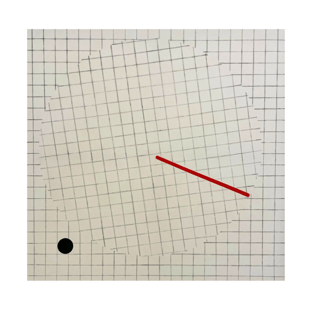 Tauno Ostra “(t,x, / time space” (2024) 147×152, mixed media
