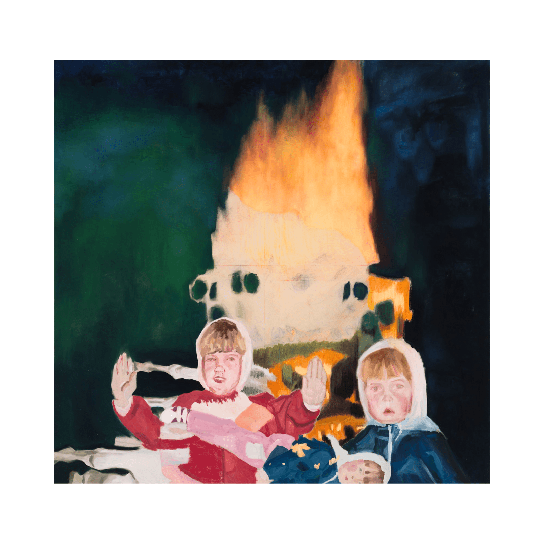 Brenda Purtsak & Marleen Suvi “Lõkke maal” (2025), õli, õlipulk ja õlipastell lõuendil, 195 × 190 cm