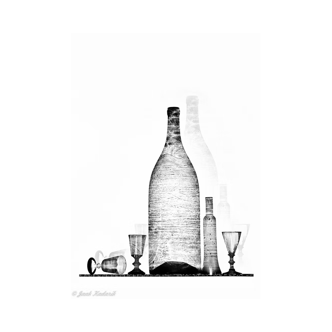 Jaak Kadarik “Kaks pudelit, kolm pitsi” (2017), 70 x 50 cm, fotogramm, digitöötlus