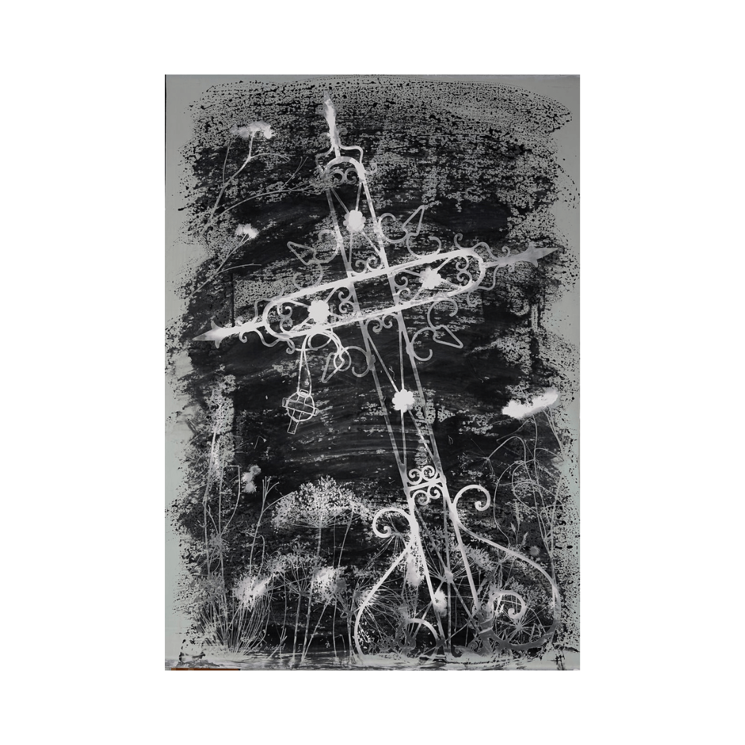 Jaak Kadarik “Unustatud ristid I” (2026), 100 x 70 cm, pintselilmutatud fotogramm
