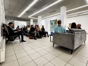 Kesknädalal toimunud vestlusõhtu kunstnike Tea Lemberpuu, Maris Siimeri ja Kaido Olega täitis galeriiruumi kunstihuvilistega. Juttu jätkus pea kaheks tunniks ning vestlused kestsid ka pärast ametlikku lõppu.