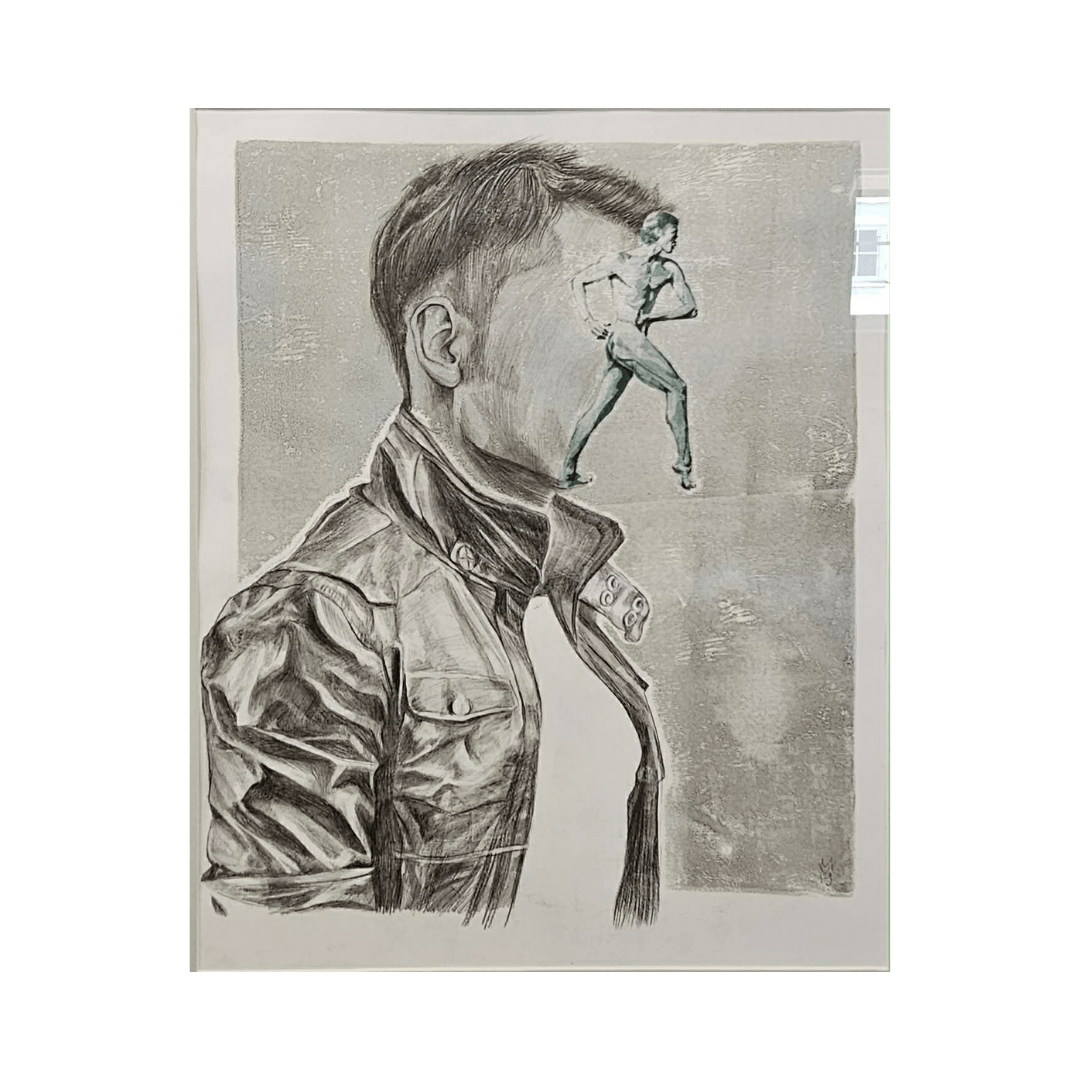 Matti Vainio “Face of a Dancer” (2019), 70 x 59 cm, plywood print, drawing (framed)