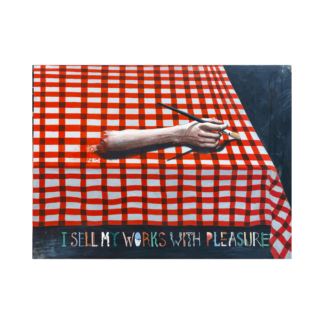 Alexei Gordin “I Sell My Artworks With Pleasure” (2018) 60×80 cm, õli lõuendil