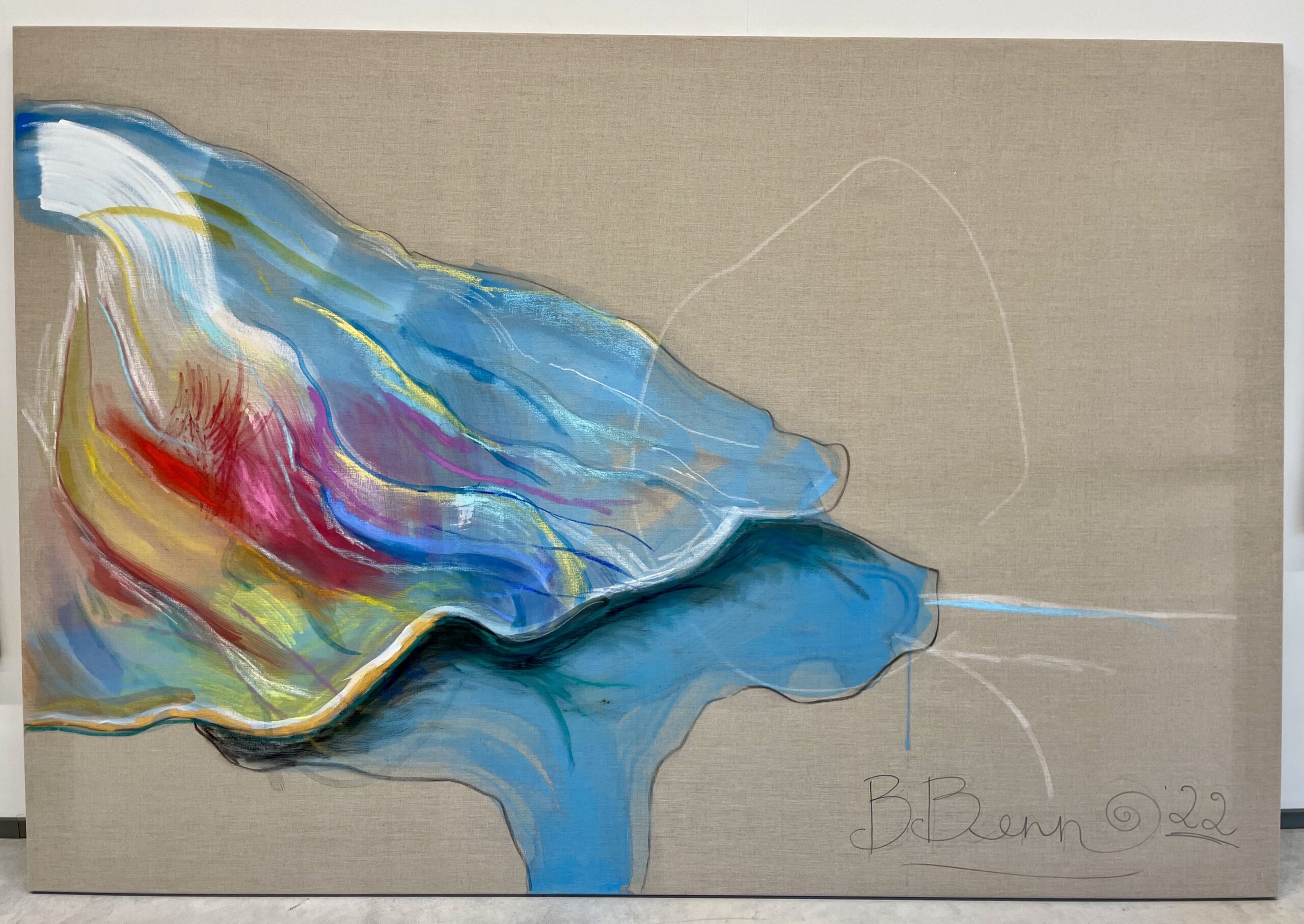 Britta Benno “Jää tulemine” (2022), joonistus lõuendil, 150×220 cm