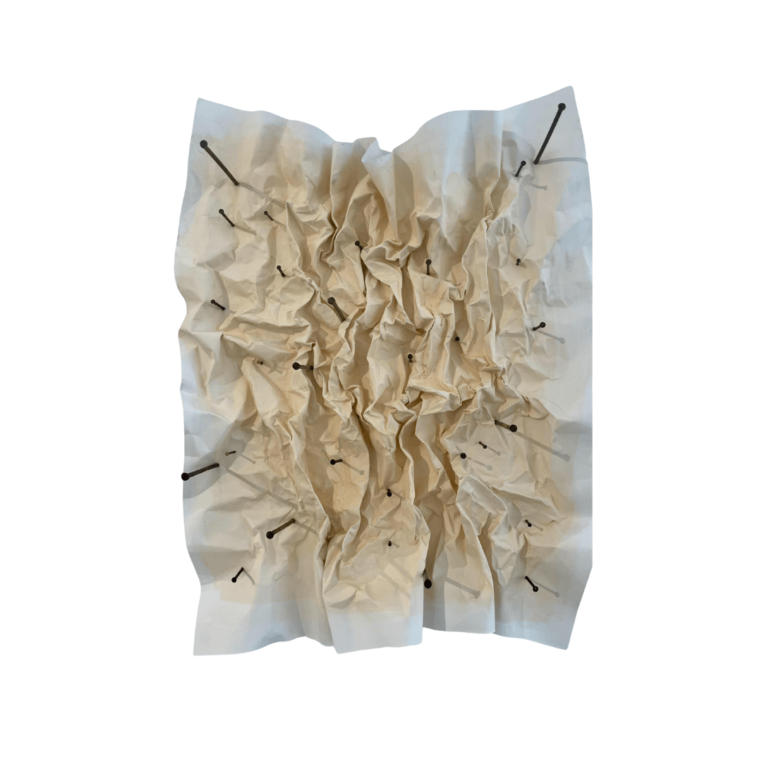 Eleny Kasemets “Kohalolu” (2025), 100 x 70 cm, akvarell paberil, naelad, lakk