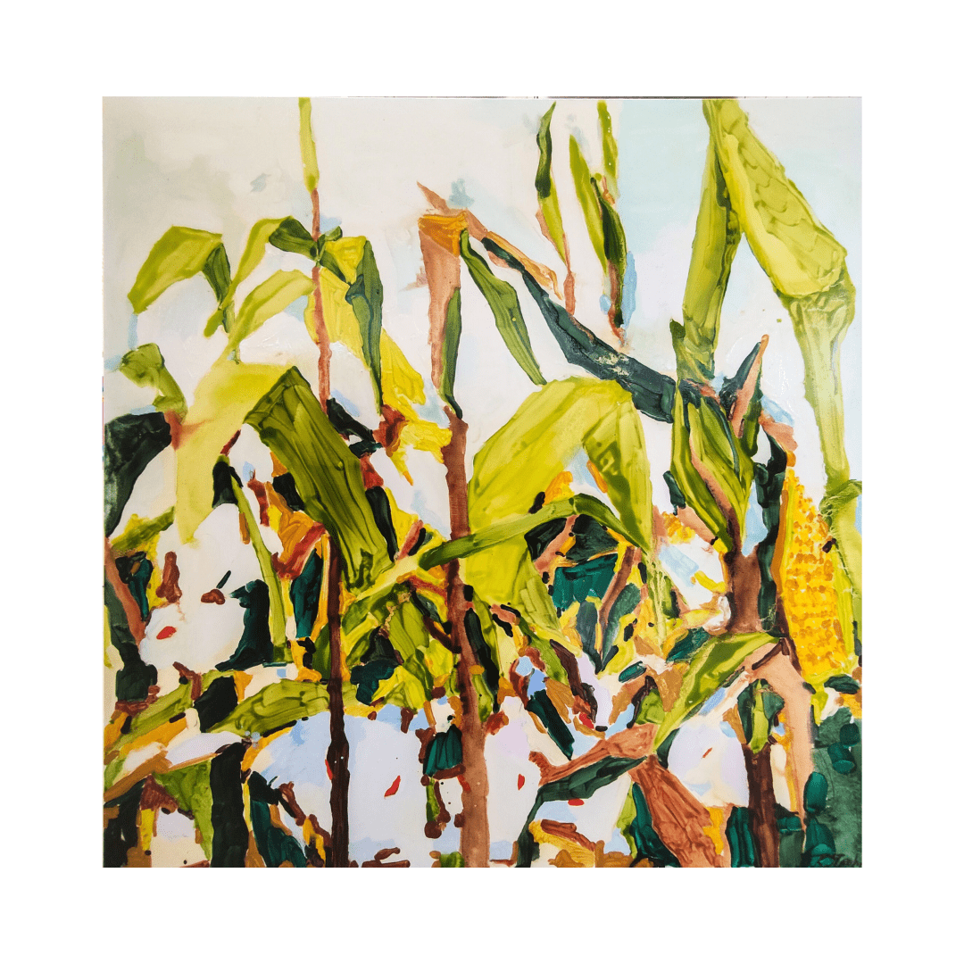 Karin Strohm “Maisipõld” (2023), õlimaal lõuendil, 130×130 cm