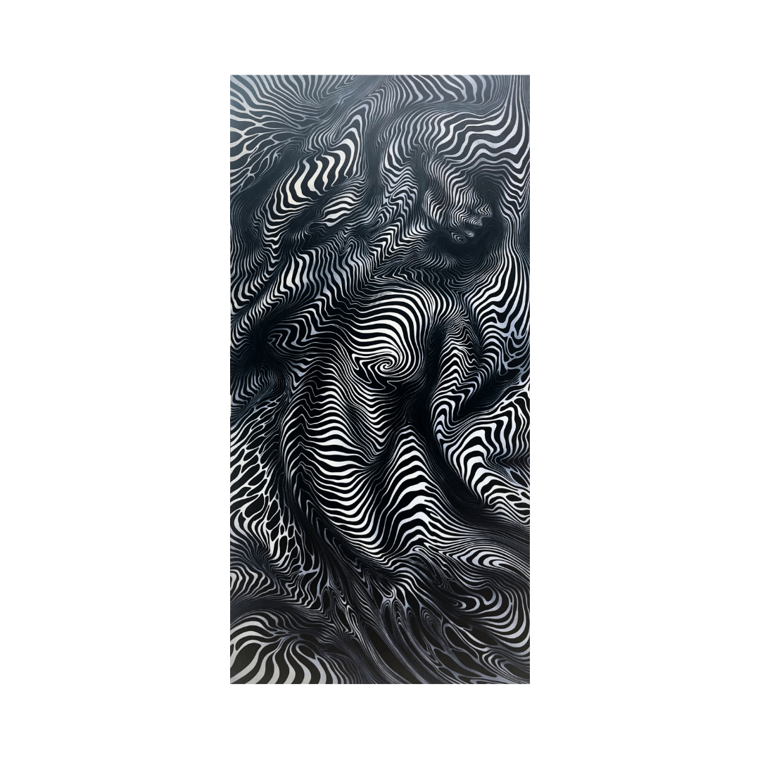 Regina-Mareta Soonsein “Mütseel” (2024), 150×74 cm, linoollõige, õli, 3/3